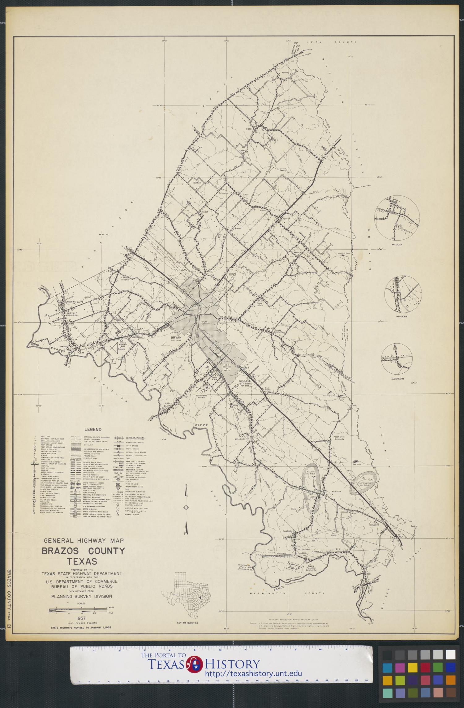 Official seal of brazos county. Brazos county, between the navasota and brazos rivers in southeast central. Includes legend and key to counties, . Each time property has been surveyed in a county, those results are put on a plat map. Map shows city and university boundaries, highways and roads, railroads, oil fields, and structures.